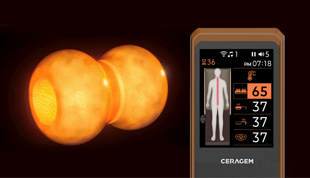 타깃 부위에 깊은 온열 효과 전달 - 65℃까지 도달하는 직가열 척추 온열 도자가