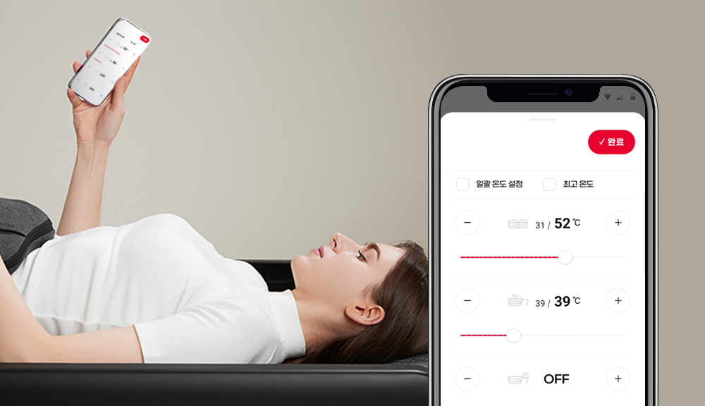 커넥티드 IoT 기능 - 예열부터 마사지 모드, 강도 등